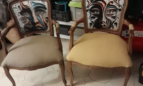Grâce à mon expérience transmise de mère en fille depuis deux générations, je transforme vos fauteuils, chaises, banquette en véritables œuvres d'art.