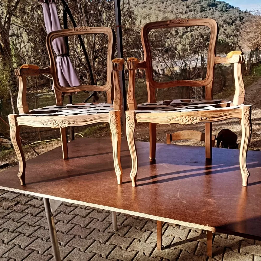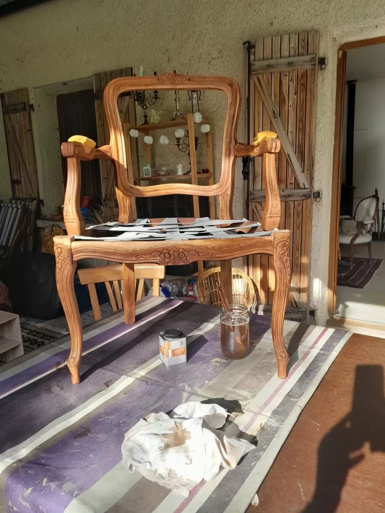 Les petits fauteuils vendent 2 fauteuils style Louis XV refaits à neuf : sablés, teintés, cirés sur Corte