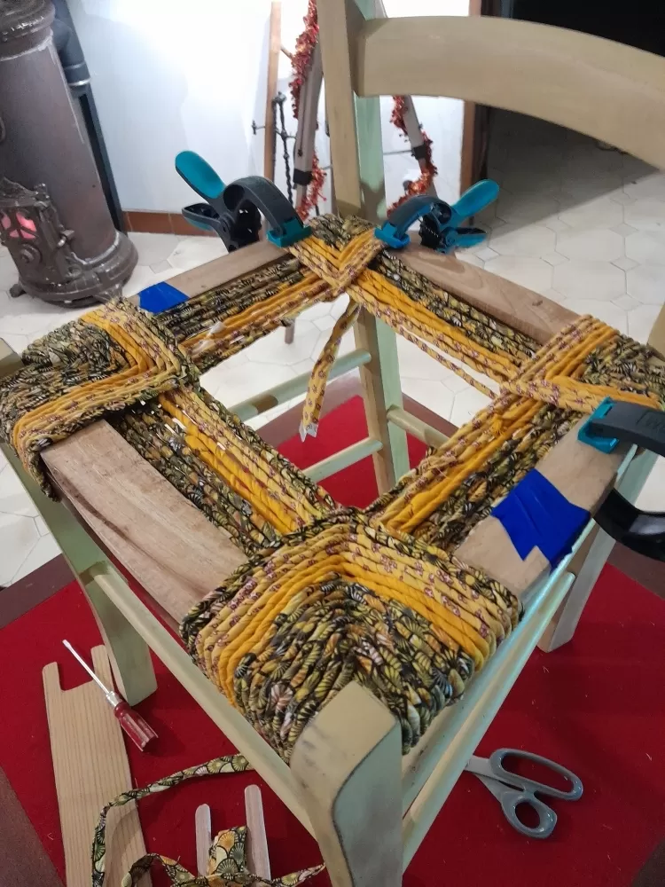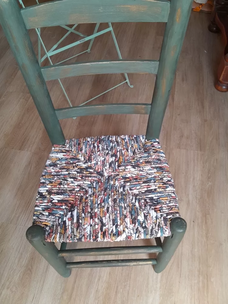 Les petits fauteuils vous propose de découvrir les chaises paillées en torons de tissus à Corte.